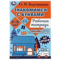 Знакомимся с буквами. Рабочая тетрадь.Закладываем основы грамотности 3-5лет 16 стр. Умка