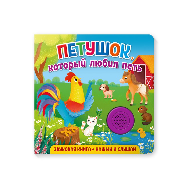 Звуковая книга "Петушок, который любил петь" для самых маленьких читателей. В каждой книге серии своя забавная и поучительная история, яркие картинки с изображением веселых и добрых героев и музыкальный модуль с голосом главного героя. Это отличный способ познакомить ребенка с окружающим миром и увлечь его чтением. Малыш будет с удовольствием рассматривать яркие страницы и читать историю главных героев книги. Книжка сделана из плотного картона с глянцевой ламинацией, поэтому родители могут не опасаться, что ребёнок порвёт странички. Благодаря компактному формату (15,5х15,5 см) её удобно брать с собой в дорогу. Книжка укомплектована батарейками. Одна кнопка - один звук.