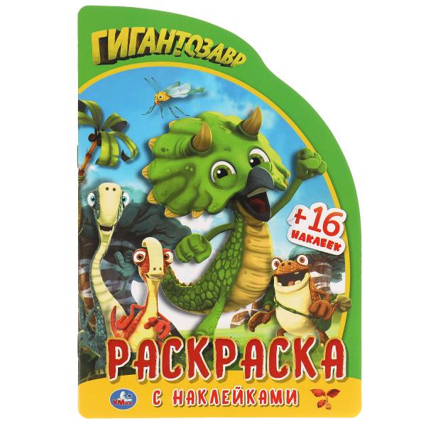 Гигантозавр. Развивающая раскраска с вырубкой в виде персонажа и наклейками. 16стр. Умка