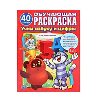 Союзмультфильм. Учим азбуку и цифры. 5-в-1. (Обучающая раскраска с наклейками). Умка