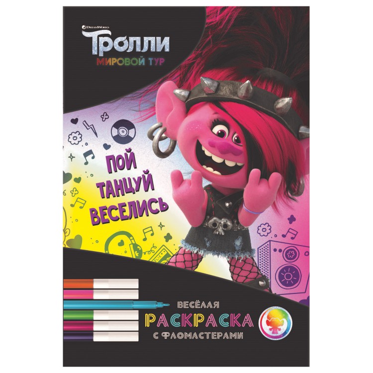 Тролли. Мировой тур. «Веселая раскраска с фломастерами». Пой, танцуй, веселись!