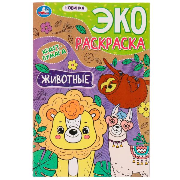 Животные. Эко-раскраска крафт-бумага. 190х285мм. Скрепка. 16 стр. Умка
