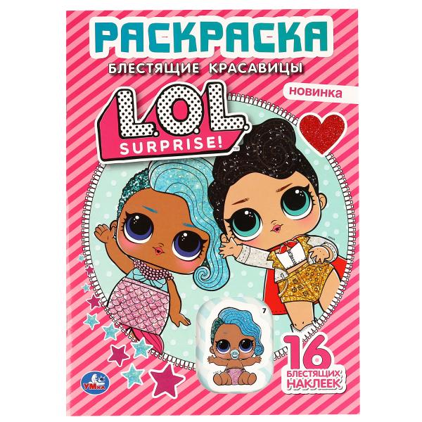 Блестящие красавицы. Лол. (Первая раскраска с вырубкой в обл. и глиттер. наклейками). Умка