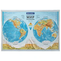 Карта мира физическая "Полушария" 101х69 см, 1:37М, интерактивная, в тубусе, BRAUBERG, 112376