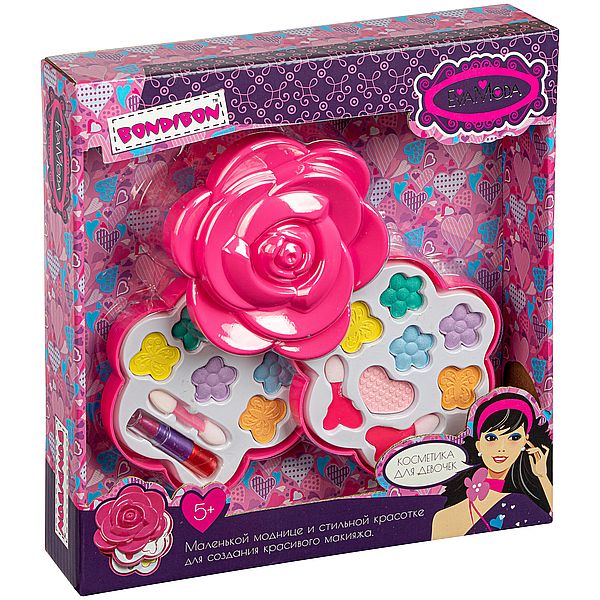 Набор детской декоративной косметики Bondibon Eva Moda, BOX 25,5x24x5,5 см; косметичка-бутон розы, тени для век