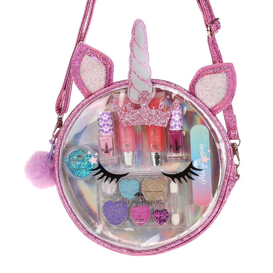 Набор косметики в сумочке "Единорог", блеск для губ, лак для ногтей, гель-блеск для век, тени для век, пилочка, аппликатор