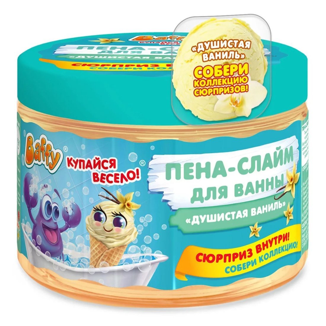 Пена-слайм для ванны детская с сюрпризом Душистая ваниль, 300 мл.