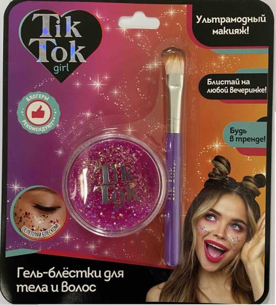 Косметика ДЛЯ ДЕВОЧЕК гель-блёскти для тела и волос кисточка в наборе розовые TIK TOK GIRL
