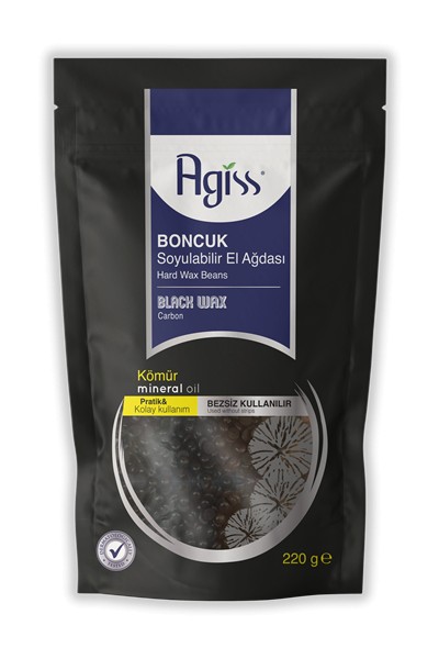 AGISS Восковые гранулы для депиляции УГОЛЬНЫЕ с минеральным маслом 220гр. ПАКЕТ-БУТЫЛКА