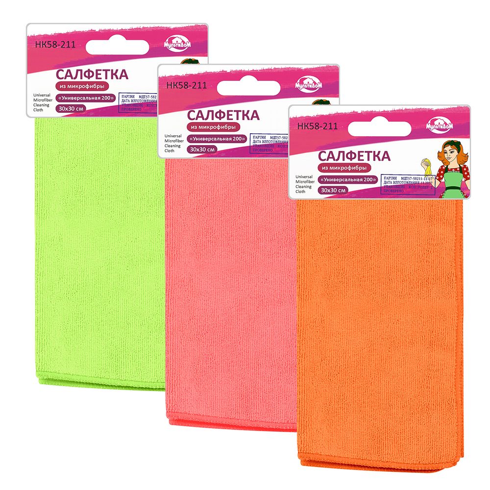Салфетка из микрофибры универсальная "Универсальная 200" 30*30, 1 штука, 3 цвета