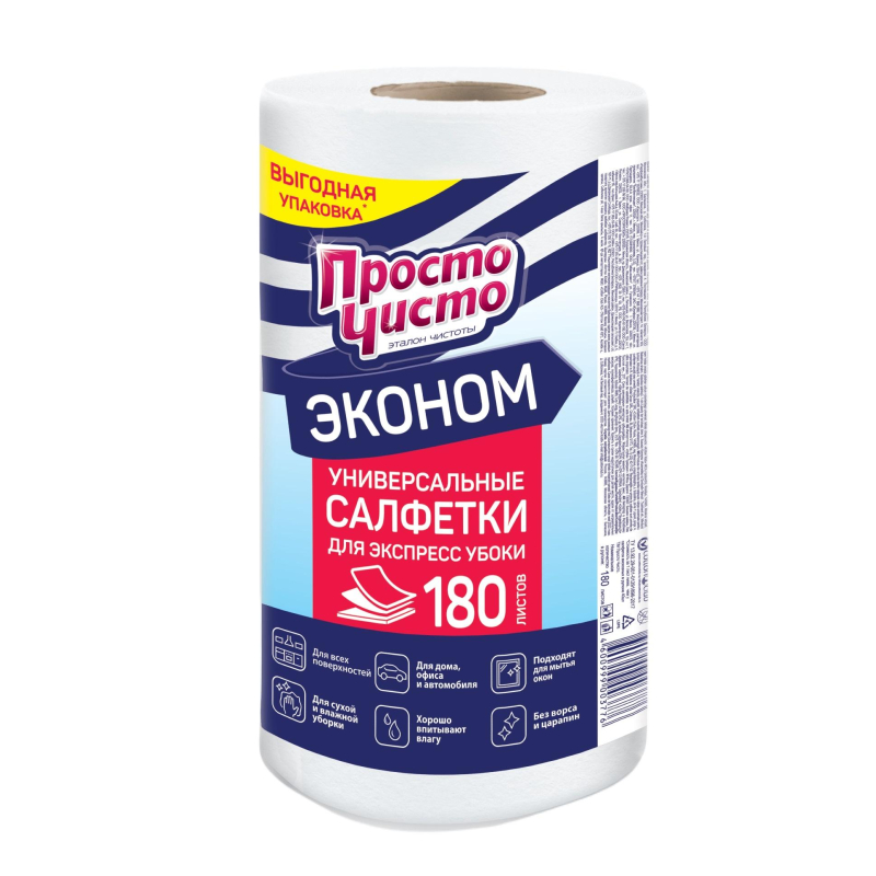 Салфетки хозяйственные ПРОСТО ЧИСТО для сухой и влажной уборки 180шт/рул