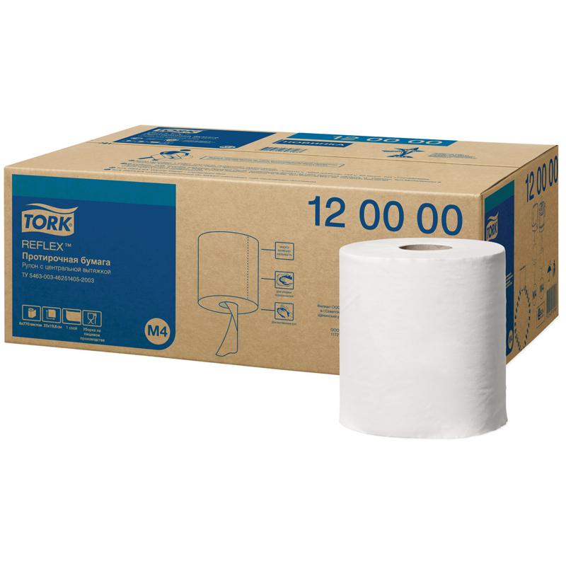 Протирочная бумага TORK Reflex с ЦВ(M4), 1сл, 270м/рулон, белый: 120000-00