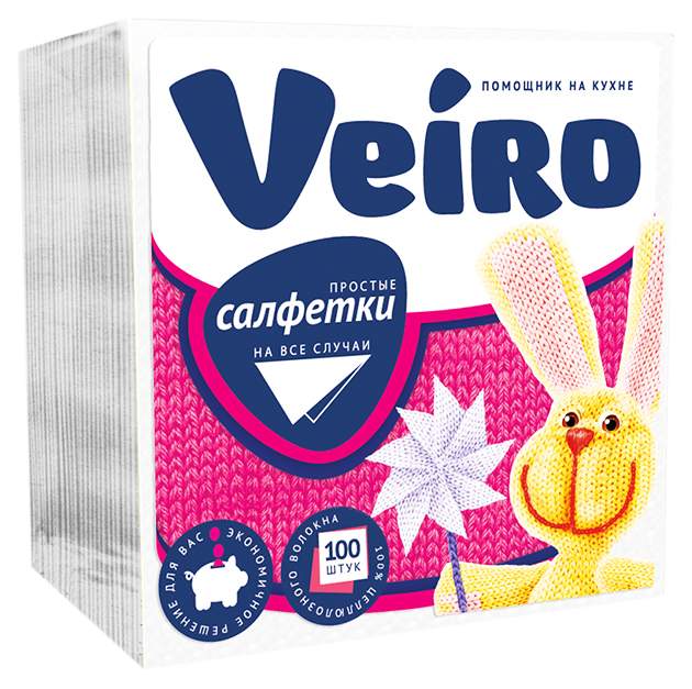 Салфетки бумажные Veiro 100 листов. 1-сл столовые сервировочные белые (24Б1/100)