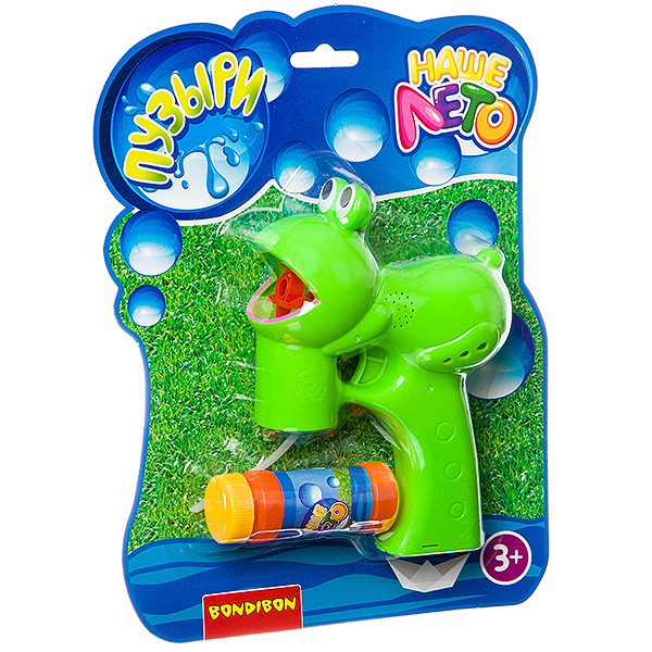 Пистолет Bondibon "Наше Лето" на батар. лягушка с мыльными пузырями 50 мл, CRD 24х30 см, арт.MY159-1