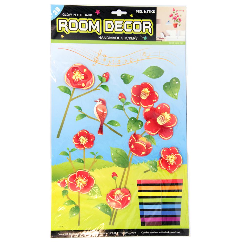 Наклейка интерьерная "Маки в полосатом горшке" 49х29 см