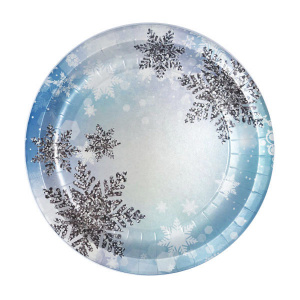 Тарелки бумажные Снежинки 23 см., 6 штук