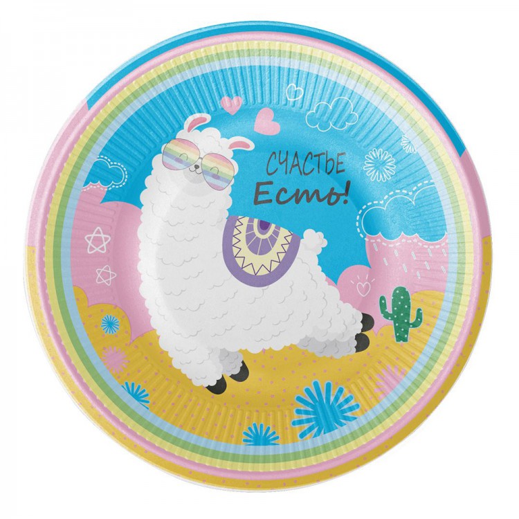 Набор бумажных тарелок Лама, 6 штук d=180 мм.