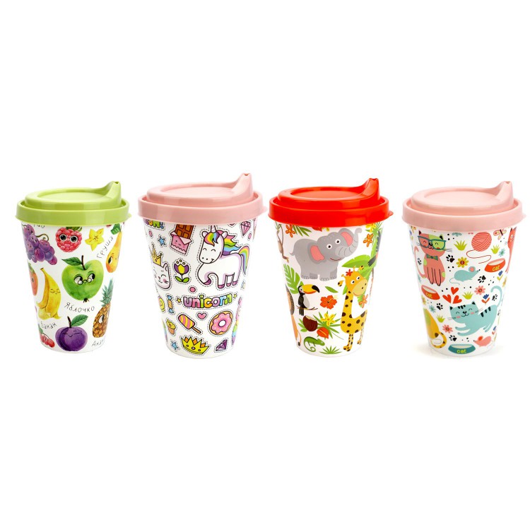 Стакан пластиковый 420 мл c крышкой микс (микс 1).Не рекомендуется мыть в посудомоечной машине.