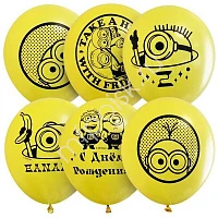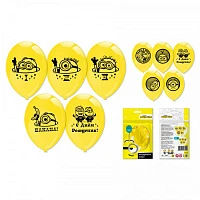 Воздушные шары, 5 штук, М12/30см, ПатиБум "Миньоны", шелк ассорти, европодвес