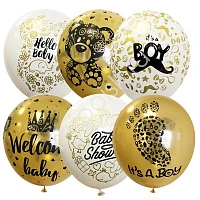 Набор шаров ассорти с рисунком Welcome Baby Boy 25 штук. MP 12"/30см