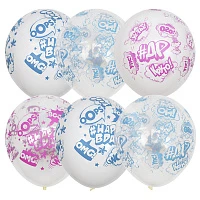 12"/30см Пастель+Декоратор (шелк) 4 ст. рис С Днем Рождения Малыш ассорти розовое 25шт