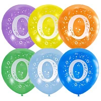 12"/30см Пастель+Декоратор (шелк) спец. ассорти 2 ст. рис Цифра Ноль 10шт