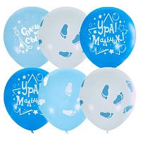 12"/30см Пастель+Декоратор (шелк) 2 ст. рис Ура, мальчик! 50шт