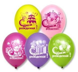 Шар с рисунком 12" ДР Котенок с подарком в асс-те