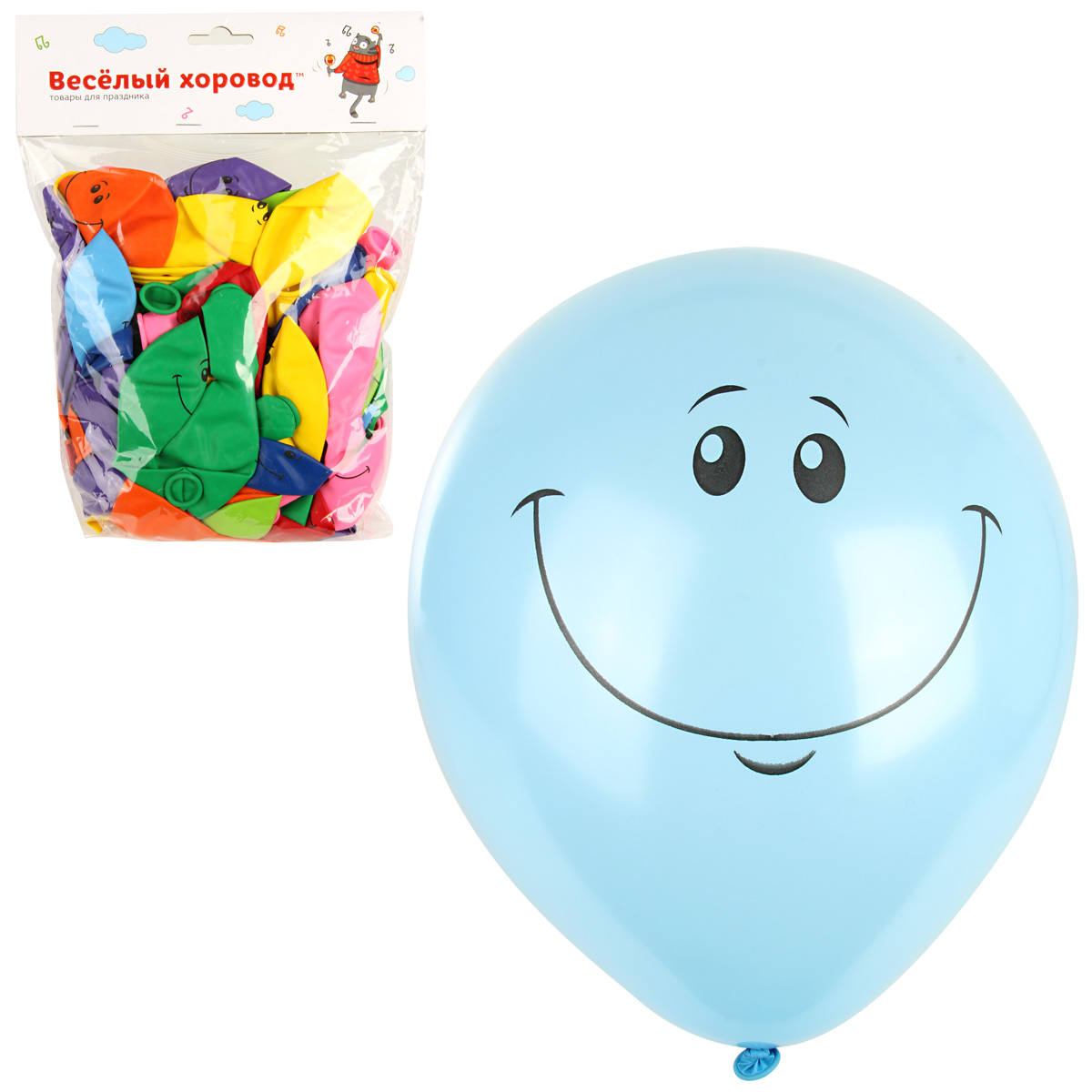 Набор шаров, одност. одноцв. печать "Улыбка", цвет в ассортименте, 2,8 гр., 30 см, 100 шт/уп.