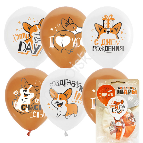 12"/30см Набор шаров WHITE&ORANGE 1ст. 2цвета рис. Корги СДР 5 штук