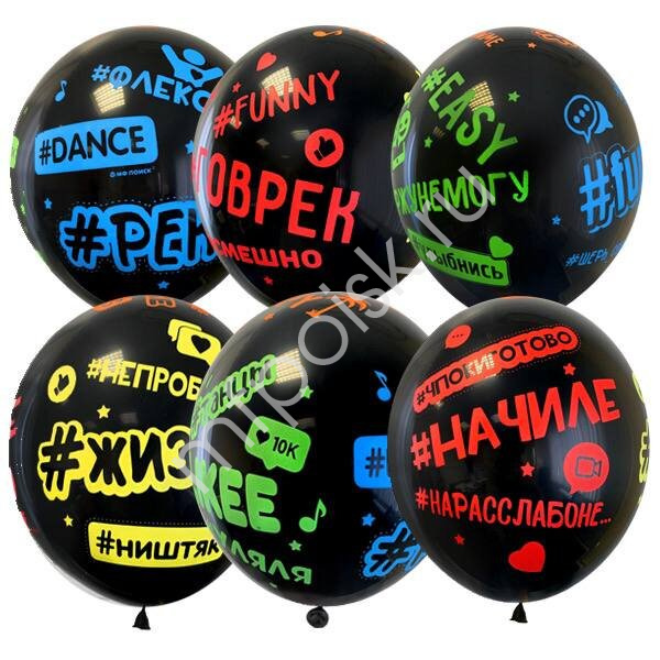 M 12"/30см Декоратор (шелк) 5 ст. рис Хештеги Black 5 штук, упаковка