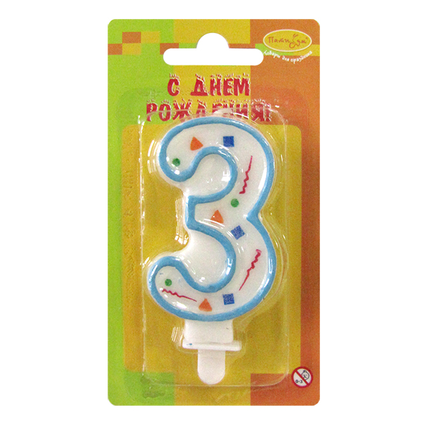 Декоративные свечи для торта. Оригинальные свечи в форме цифры 3 из коллекции свечей голубое конфетти. Отличное решение для праздничного украшения торта, оформления дессерта ко Дню рождения или юбилею. Свечи цифры для торта отличаются высоким качеством. Высота таких свечей для торта составляет 7см. Температура хранения и транспортировки от -10? до +25?.