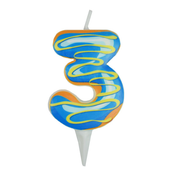 Свечи из коллекции Пончики - настоящий подарок для всех сладкоежек! У каждой цифры свой дизайн - у тройки это глазурь из голубики и ванильный сироп!