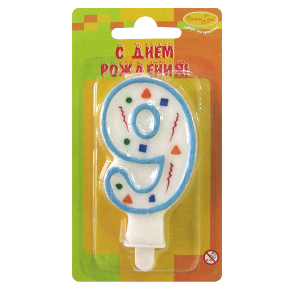 Декоративные свечи для торта. Оригинальные свечи в форме цифры 9 из коллекции свечей голубое конфетти. Отличное решение для праздничного украшения торта, оформления дессерта ко Дню рождения или юбилею. Свечи цифры для торта отличаются высоким качеством. Высота таких свечей для торта составляет 7см. Температура хранения и транспортировки от -10? до +25?.