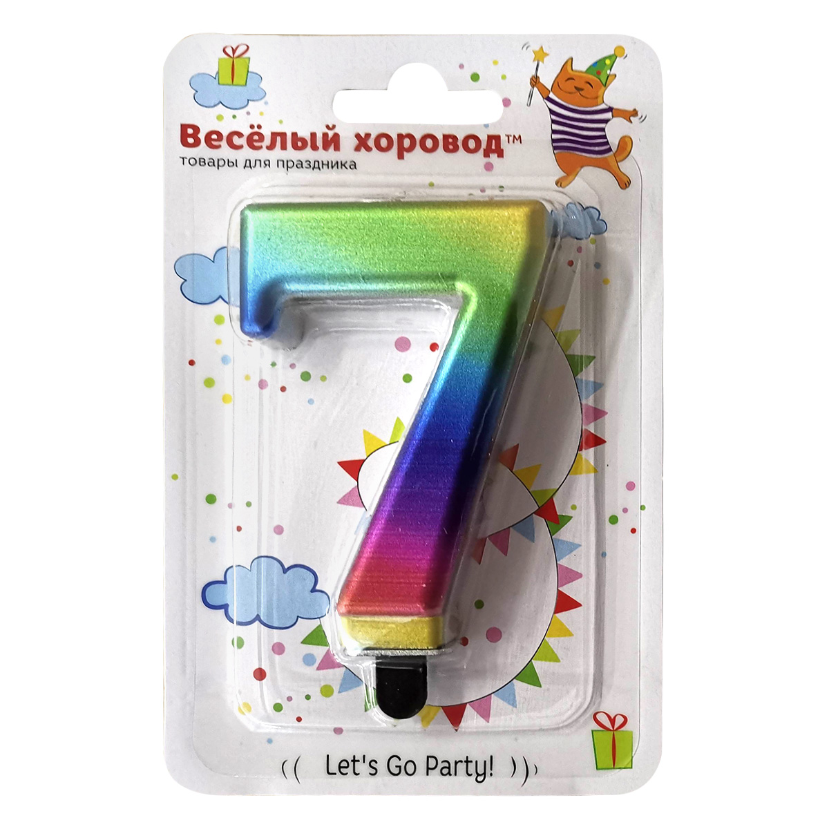 Свеча для торта цифра 7 радужный, подст., 1шт/бл.