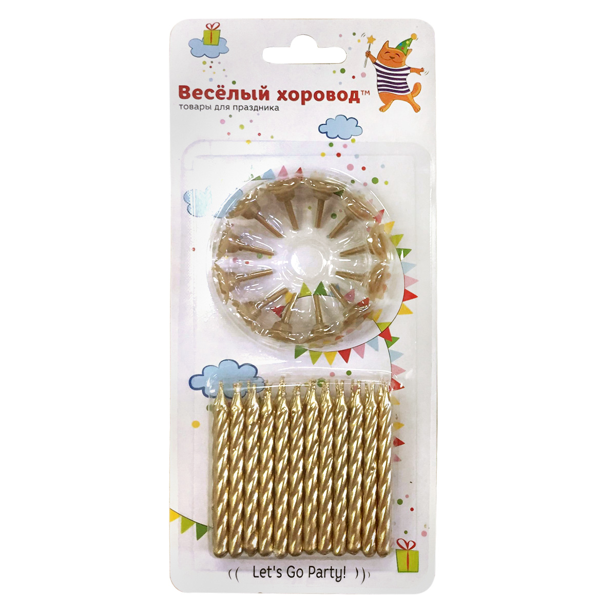 Нарядное и практичное украшение для тортика - красивые свечки, которые нужно задуть, обязательно загадав при этом самое сокровенное желание. В комплект входят 24 свечи золотого цвета и 12 держателей для свечек, которые вставляются в тортик. Благодаря своим миниатюрным размерам эти свечки отлично подойдут и для декора маленьких сладостей, например, кексиков. Свечки станут прекрасным решением для украшения десертов на любой праздник: День рождения, юбилей, детские мероприятия. Свечи изготовлены из парафина, держатели из пластика. Упакованы в блистер с европодвесом. Не являются детской игрушкой. Размеры набора в упаковке: 9,5*1,5*21 см.