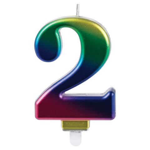 Свеча-цифра для торта "2" "Радужная", 9 см, ЗОЛОТАЯ СКАЗКА, с держателем, в блистере, 591435