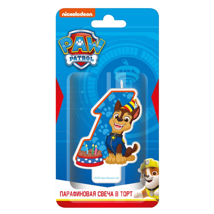 Щенячий патруль. Парафиновая свеча в торт (цифра 1 с героем) в блистере