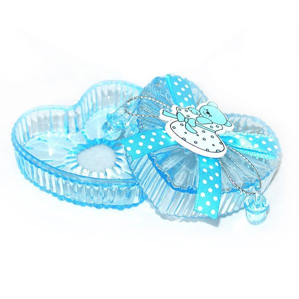 Бонбоньерка Сердце с медвежонком голубая 2 шт