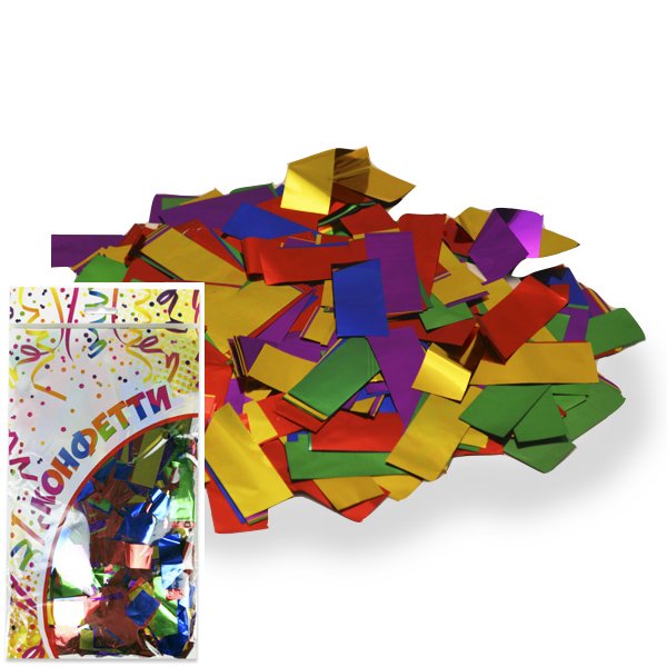 Сложно представить праздник без яркого конфетти! Добавить торжественности в мероприятие можно с помощью разноцветных фольгированных прямоугольников-конфетти.