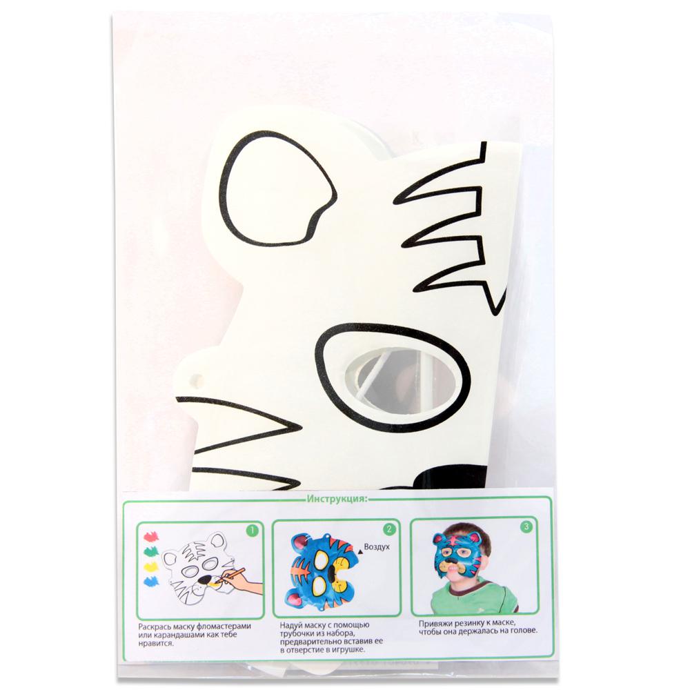 Маска своими руками Тигр. Раскрась маску карандашами или фломастерами. Затем надуйте маску с помощью трубочки. Привяжи резиночку к маске, чтобы она держалась на голове.
