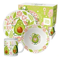 Набор посуды в подарочной упаковке "Авокадо. Keep Calm", 3 предмета, фарфор