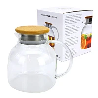 Заварочный чайник с бамбуковой крышкой и металлическим ситечком в подарочной упаковке, 1600 мл, стекло