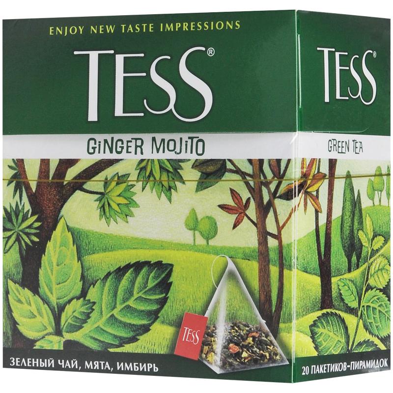 Чай Tess "Ginger Mojito", зеленый, цитрус, имбирь, мята, 20 пакетиков-пирмидок по 1,8г 0788-12