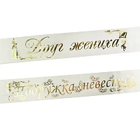 Ленты "Подруга невесты, Друг жениха" белая атлас 180 см х 10 см 2 шт/уп