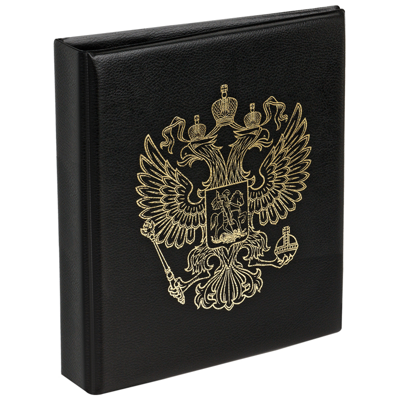 Альбом для монет OfficeSpace "Символика России" формат Optima, 230*270 на кольцах, черный, 10л., иск. кожа