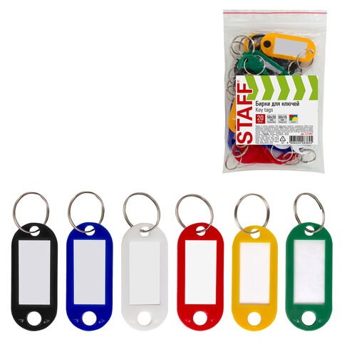Бирки для ключей КОМПЛЕКТ 20 ШТ., длина 50 мм, инфо-окно 30х15 мм, АССОРТИ, STAFF, 237487, 89
