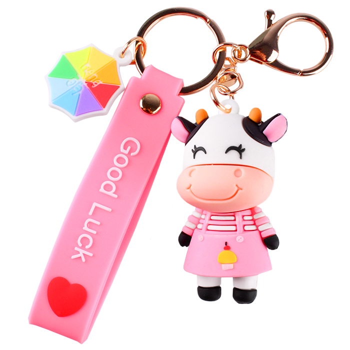 Брелок "Бычок" розовый (5,5*3см ) с карабином и силиконовом ремешком с надписью"GoodLuck" и насадками. Упаковка - п/э.