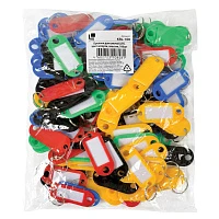 Брелоки для ключей КОМПЛЕКТ 100 шт., длина 48 мм, инфо-окно 28х15 мм, АССОРТИ, STAFF, 235590
