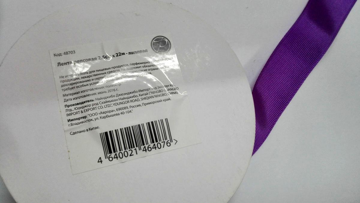 Лента репсовая 2.5см х 22м - лиловая